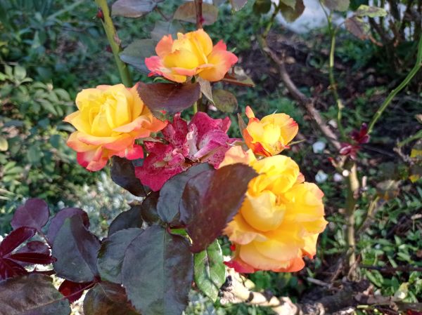 Van két majdnem kocka alakú, vastag hungarocelem is, aminek a közepe lyukas, azok közül az egyiket az új rózsámra tettem, a tetejére sok réteg fagyvédő takarót és szigetelést a víz ellen, a másikat a kis Elaeagnus multiflora-ra tettem, bár nem tudom azt kell-e takarni... de kicsike még, 30 centis körül van, inkább védem.