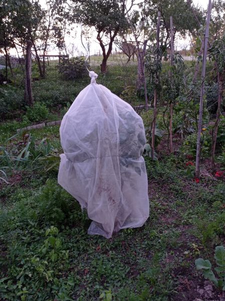 Ez alatt pedig karalábék vannak és van még ott brokkoli, meg bimbóskel, de utóbbiak szerintem már nem fognak megnőni. Tettem erre is vastag fagyvédő takarót és a tetejébe a vastag fóliát... meglátom, kísérletezem.